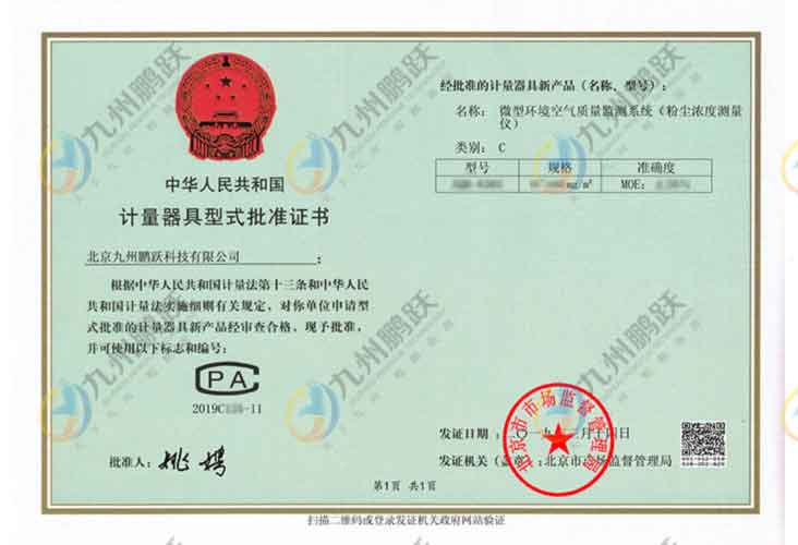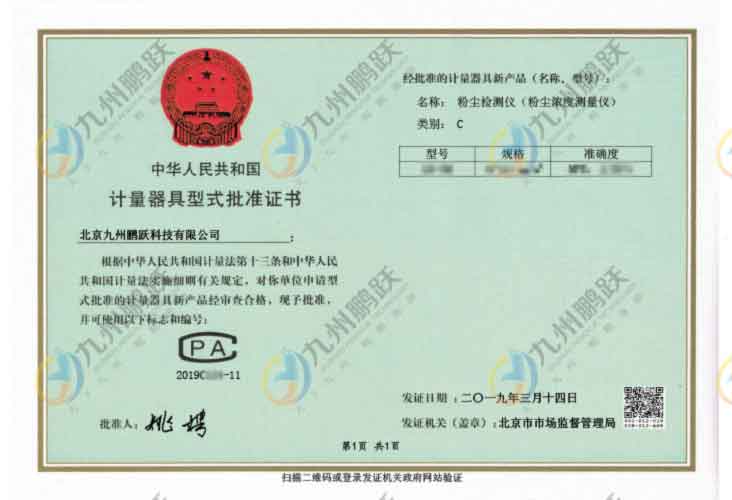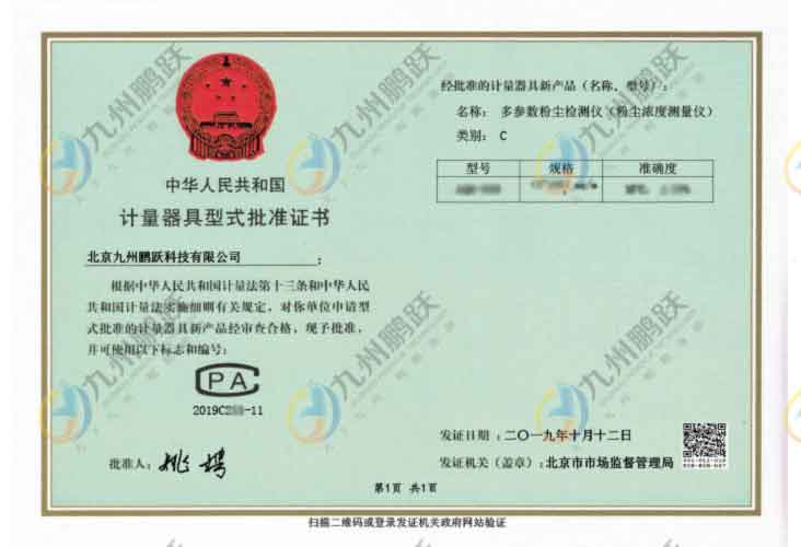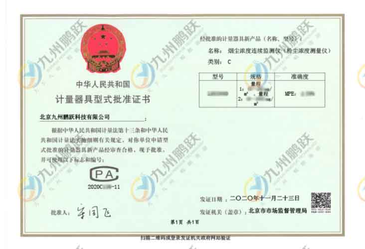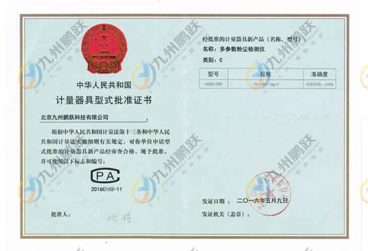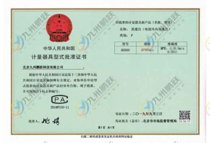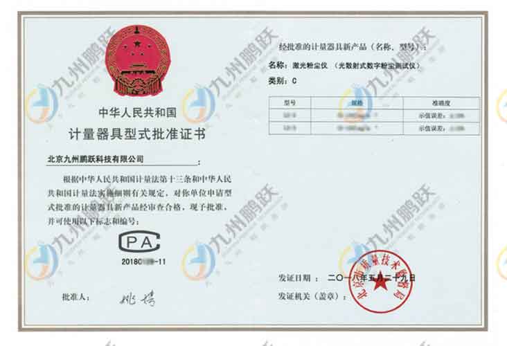計(jì)量器具型式批準(zhǔn)證書