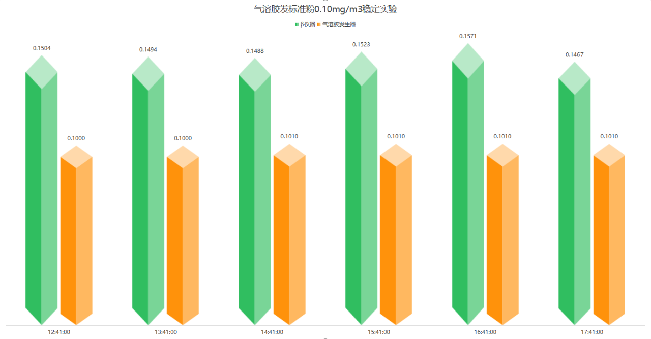在 0.10mg/m? 的 A2 粉穩定實驗中,經過多次重復測量,基準儀器 β 的重復性誤差為 0.428%。根據相關國家標準,此類儀器的重復性誤差允許范圍為 ±2%,0.428%<±2%,這表明在該濃度下,β 射線粉塵監測儀測量數據的離散程度極小,能夠保持高度的一致性,進而反映出 QRJ-400 便攜氣溶膠發生器在產生 0.10mg/m? 濃度的氣溶膠時,具有出色的穩定性,可為相關測量儀器提供可靠的校準源。