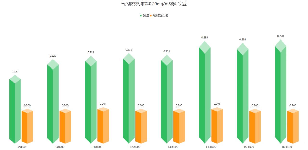 當 A2 粉濃度提升至 0.20mg/m? 時,再次開展穩定實驗,基準儀器 β 的重復性誤差為 0.36%,同樣遠低于國家標準規定的 ±2%。這進一步證實了,無論在較低濃度還是相對較高濃度下,QRJ-400 便攜氣溶膠發生器都能夠穩定地產生氣溶膠,確保了實驗數據的可靠性和可重復性。