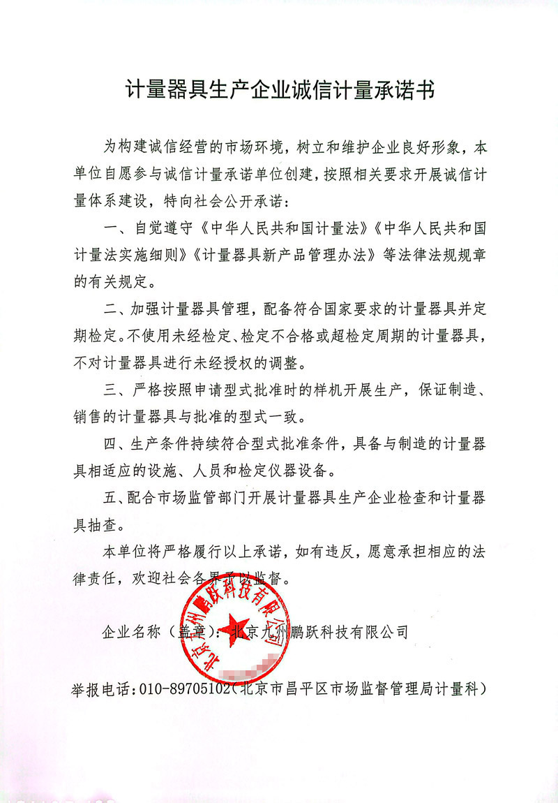 計(jì)量器具生產(chǎn)企業(yè)誠(chéng)信計(jì)量承諾書
